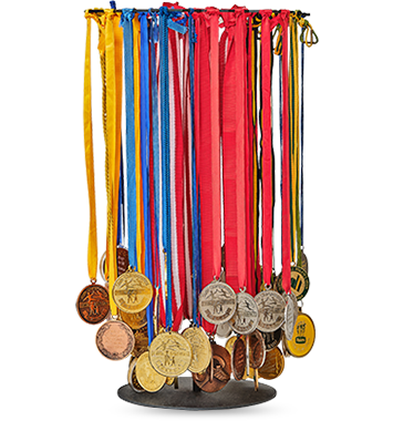 Really happy with the new medal hanger. It’s great to be able to spread the athletics medals out and have them on a designated hanger. We like that it’s off the wall and we can fit so many more on it. I’ll spread the word of your fine products!